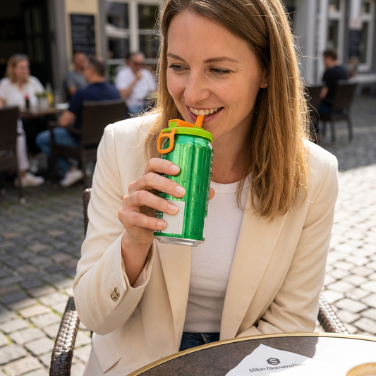 2-in-1 wiederverwendbarer Silikon-Dosenverschluss mit Strohhalmen – auslaufsicherer Getränkedeckel für unterwegs (2er-Set)