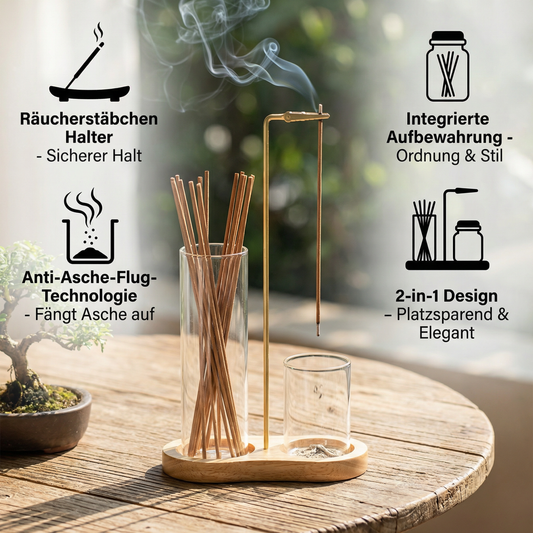 2-in-1 Räucherstäbchenhalter mit Anti-Asche-Flug-Technologie