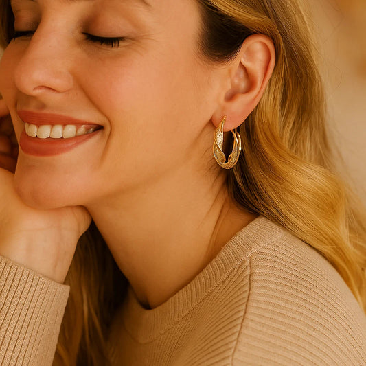PRE BLACK-FRIDAY SALEElegante Goldfarbene Gedrehten Creolen Ohrringe mit Netzmuster