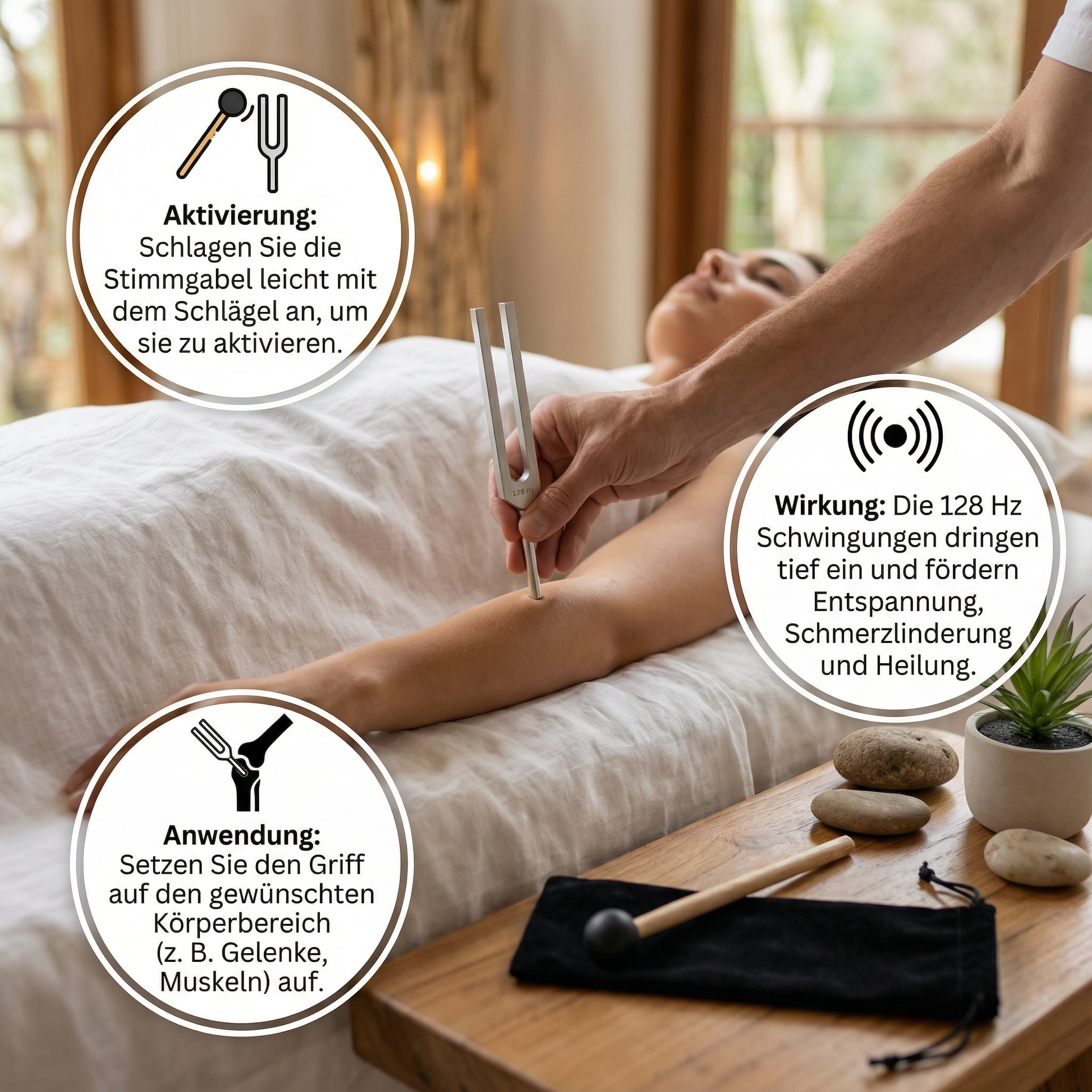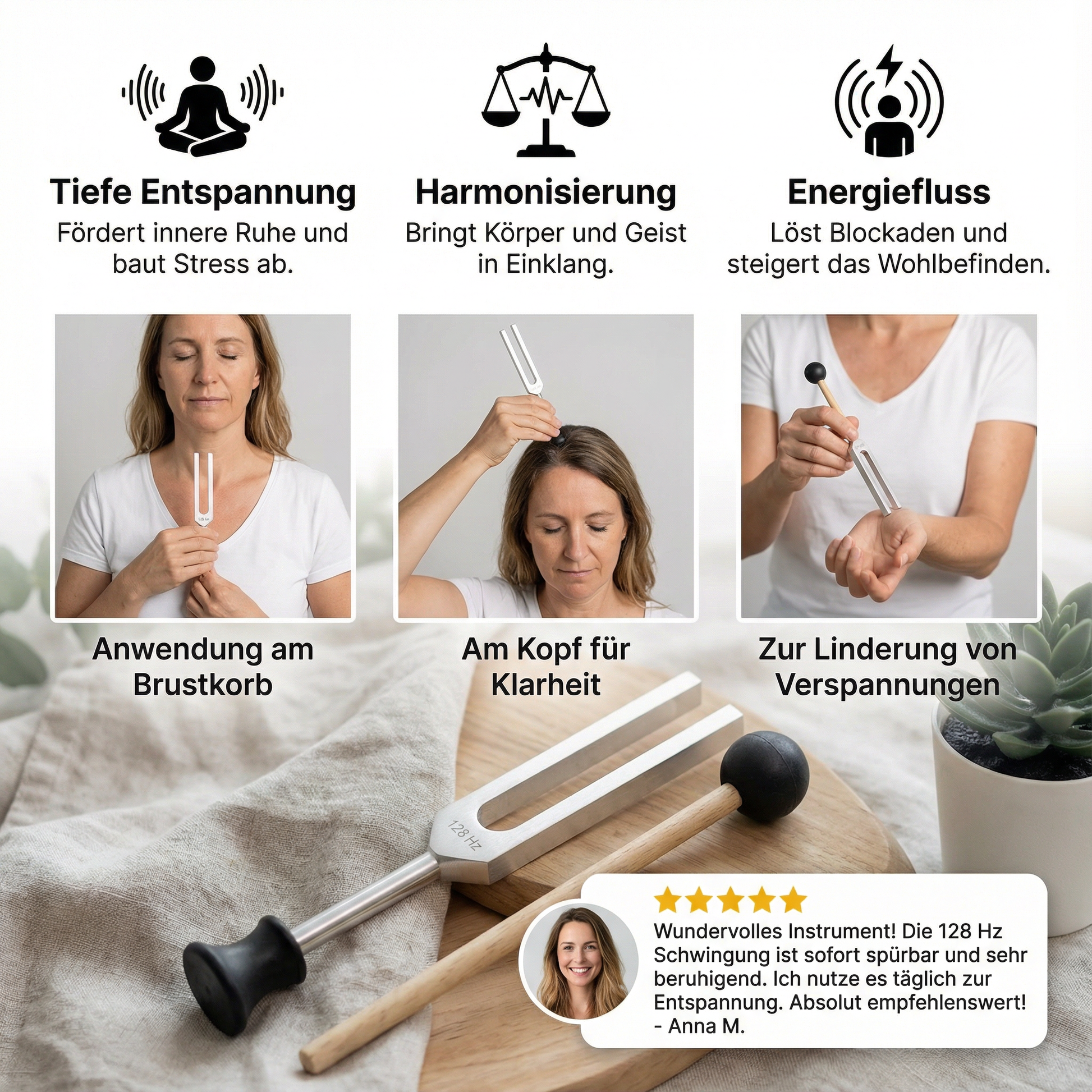 🎵 Heilende 128 Hz Frequenz: Fördert tiefe Entspannung und hilft, Blockaden zu lösen, um das Wohlbefinden zu steigern.