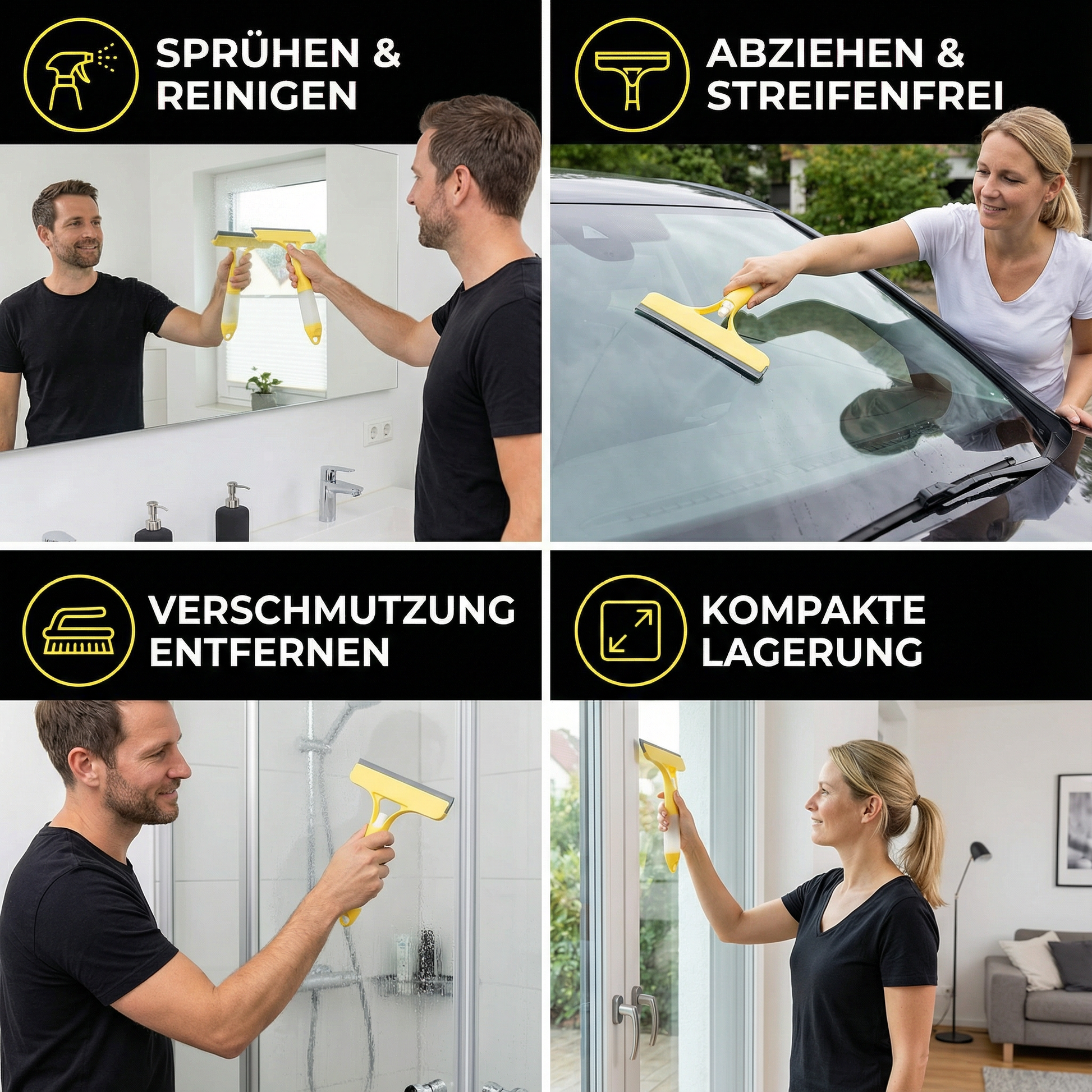 ✨ Streifenfreie Sauberkeit: Durch die integrierte Abziehlippe bleibt Glas klar und glänzend, ganz ohne Rückstände.