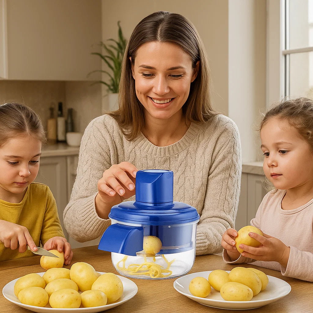 "Der automatische elektrische Schäler ist wirklich eine große Hilfe in meiner Küche – er schält super schnell und gleichmäßig. Besonders praktisch finde ich, dass ich währenddessen andere Dinge vorbereiten kann und trotzdem perfekte Ergebnisse bekomme."