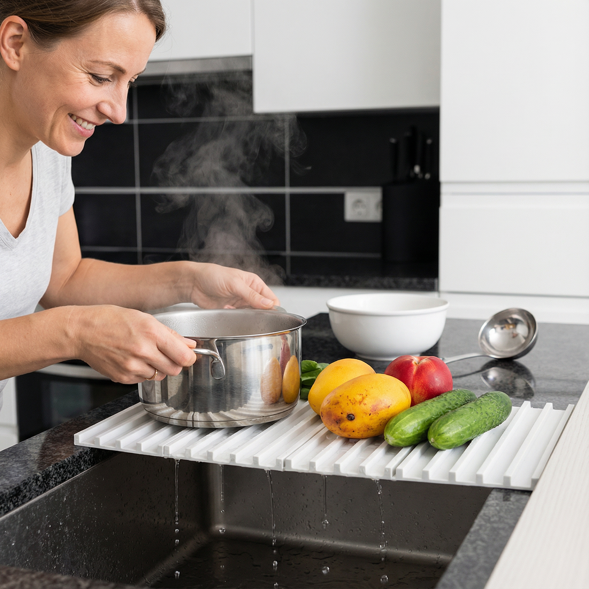 "Die Faltbare Silikontropfmatte ist einfach fantastisch! Sie schützt nicht nur meine Arbeitsflächen vor heißen Töpfen, sondern lässt sich auch mühelos verstauen, wenn sie nicht gebraucht wird."