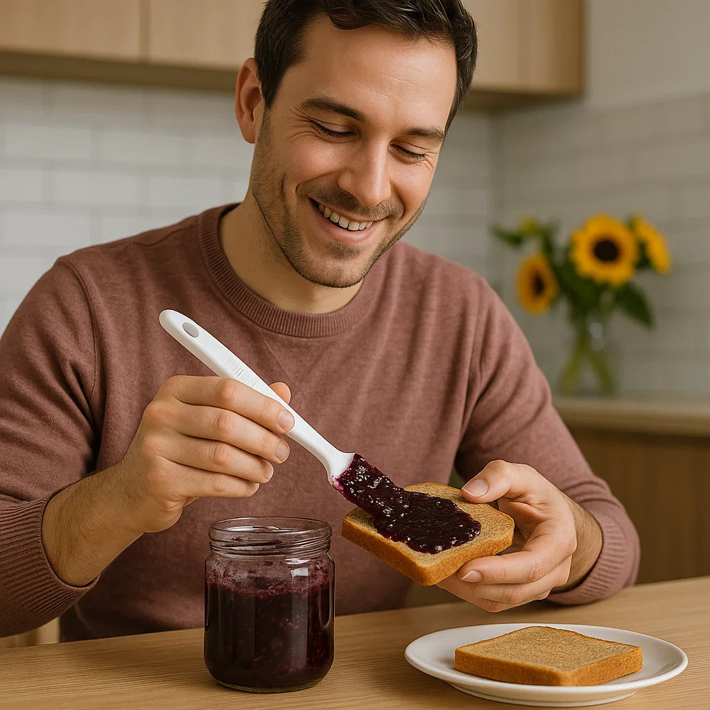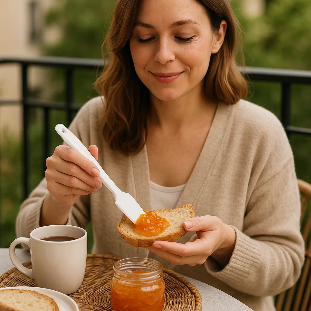 "Der Mini Spatel aus Silikon ist überraschend praktisch und kommt bei mir inzwischen täglich zum Einsatz. Besonders gefällt mir, dass ich damit selbst schmale Gläser komplett auskratzen kann und nichts mehr verschwendet wird."