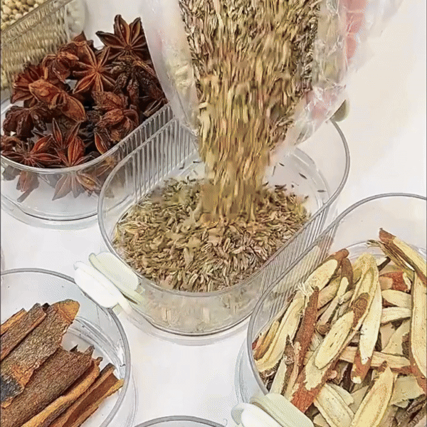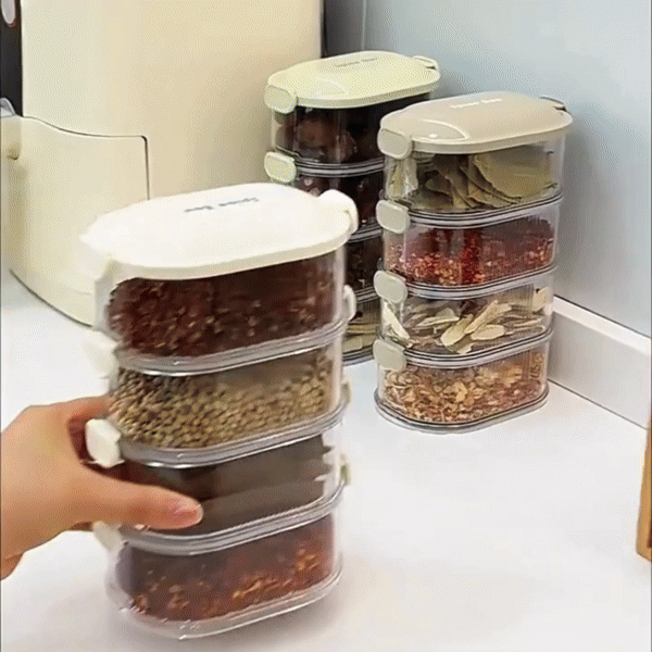 Die praktischen Gewürzboxen helfen dir, deine Küche sauber und aufgeräumt zu halten. Jeder Behälter ist transparent, sodass du sofort sehen kannst, welches Gewürz sich darin befindet. Die stapelbare Funktion spart Platz und sorgt dafür, dass alles ordentlich verstaut ist – ideal für kleine Küchen oder Vorratsschränke.
