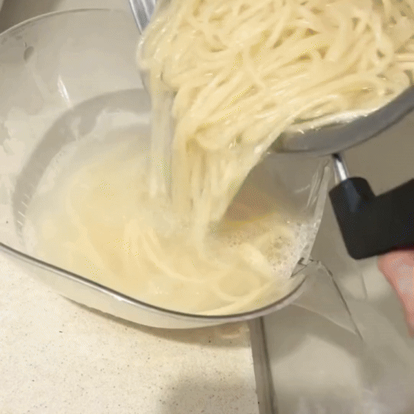 Dank des integrierten Wasserablaufs kannst du Obst, Gemüse und Pasta einfach abtropfen lassen – ohne lästiges Umfüllen.