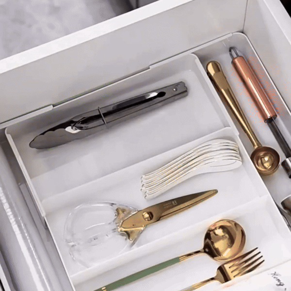 Der Schubladen Organizer revolutioniert die Art und Weise, wie du deine Küche organisierst. Vergiss das Durcheinander und freu dich über klare Strukturen und effizientes Arbeiten. Ob Besteck, Kochutensilien oder Gewürze – alles findet seinen festen Platz und ist stets griffbereit.